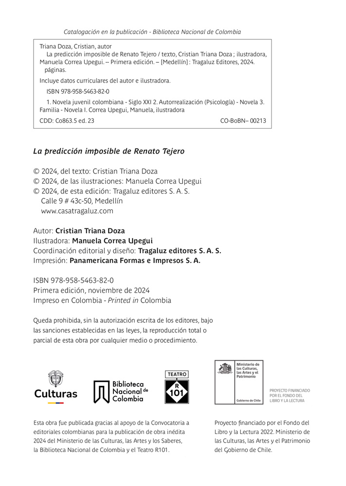 Esta novela fue financiada por el fondo del libro y la lectura del Ministerio de las Culturas, las Artes y el Patrimonio de Chile en la línea becas de creación de literatura infantil y juvenil en el año 2022. También fue ganadora de la convocatoria a editoriales colombianas para la publicación de obra inédita 2024 del Ministerio de las Culturas, las Artes y los Saberes de Colombia.